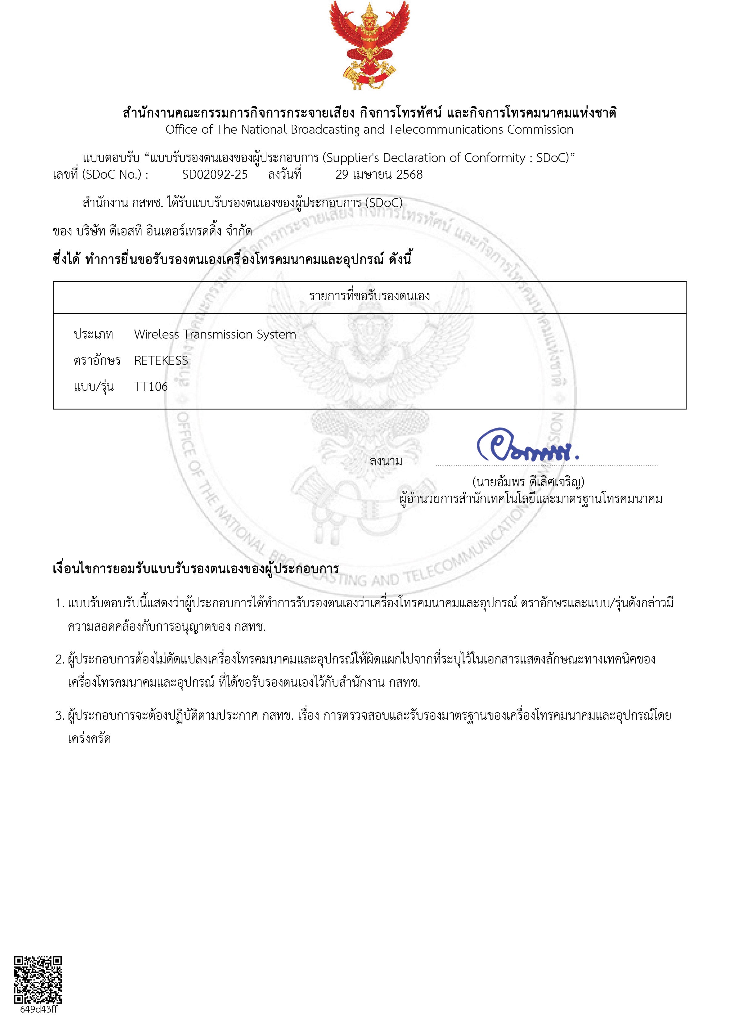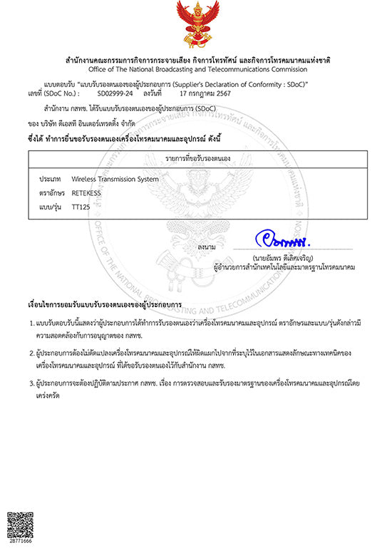 รู้เพิ่มเติม >แบบรับรองตนเองของผู้ประกอบการ (กสทช.)