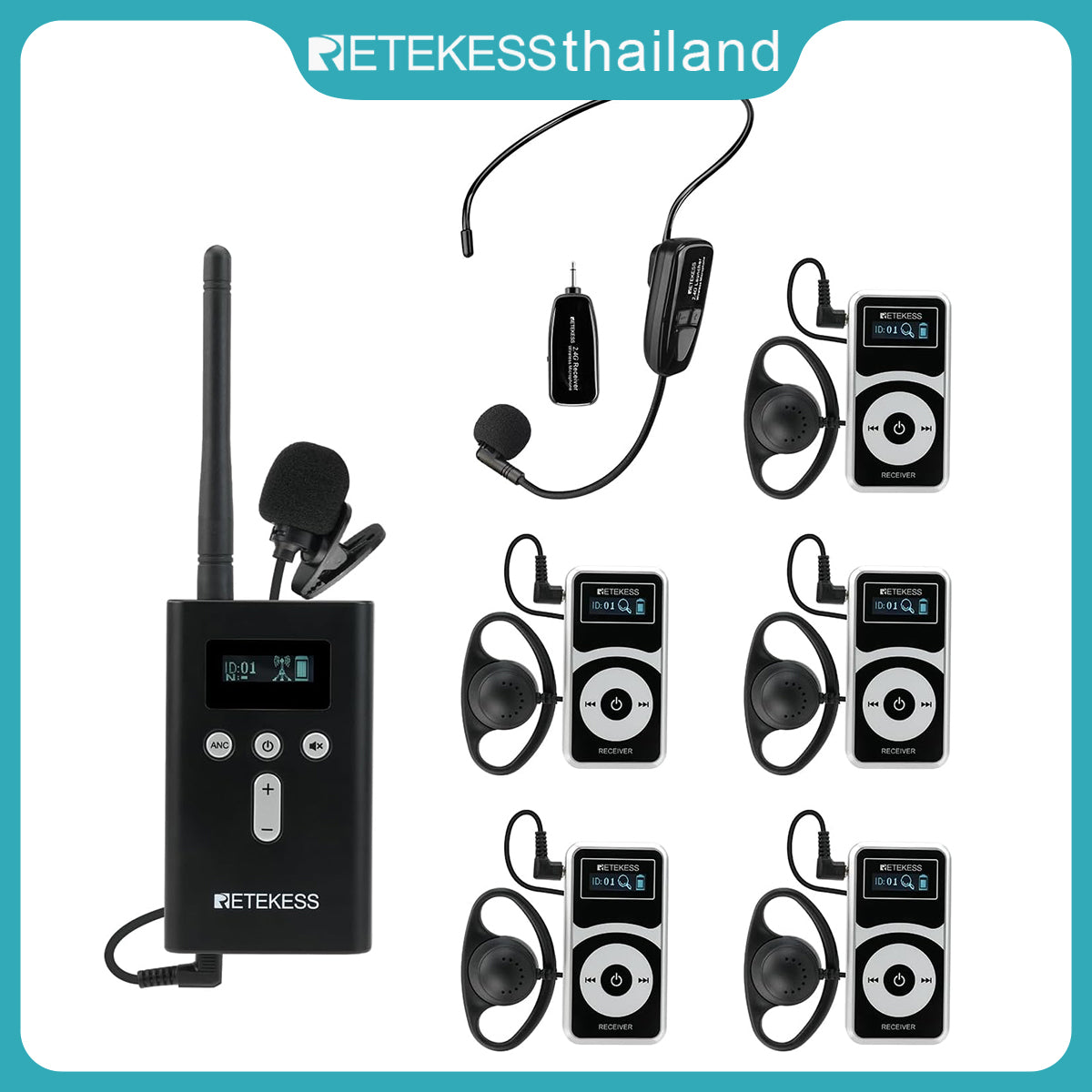ชุดหูฟังระบบไกด์นำเที่ยว Retekess T130P อุปกรณ์แปลภาษา T130 รุ่นที่ 3 ลดเสียงรบกวนแบบค่อยเป็นค่อยไป อุปกรณ์แปลภาษาพร้อมกัน 160 ม. สำหรับศาล (เครื่องส่ง 1 เครื่อง เครื่องรับ 5 เครื่อง)